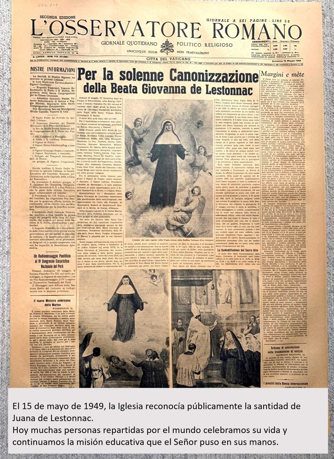 - Mayo 2024:CELEBRACIÓN DE LOS 75 AÑOS DE LA CANONIZACIÓN DE SANTA JUANA: JUANA DE LESTONNAC, MUJER DEL ABSOLUTO
